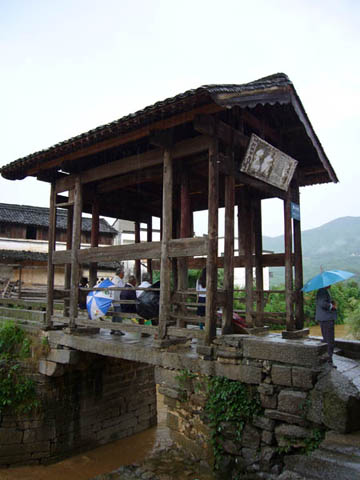 町の東街と前後街の主な通り道。明代に作られた五穴(橋のデザイン、作り方)石作りの橋。記録によると、橋の上に建物が造ってあったが戦争で無くなった。橋は長さ26.65m、幅3.85m、川の水より4.55m高い。明代の改造で橋の中央にある建物を橋の西側に移設した。橋の上家は木造で、瓦の屋根をのせ、周りは壁が無く、両側に長い椅子を付けている。