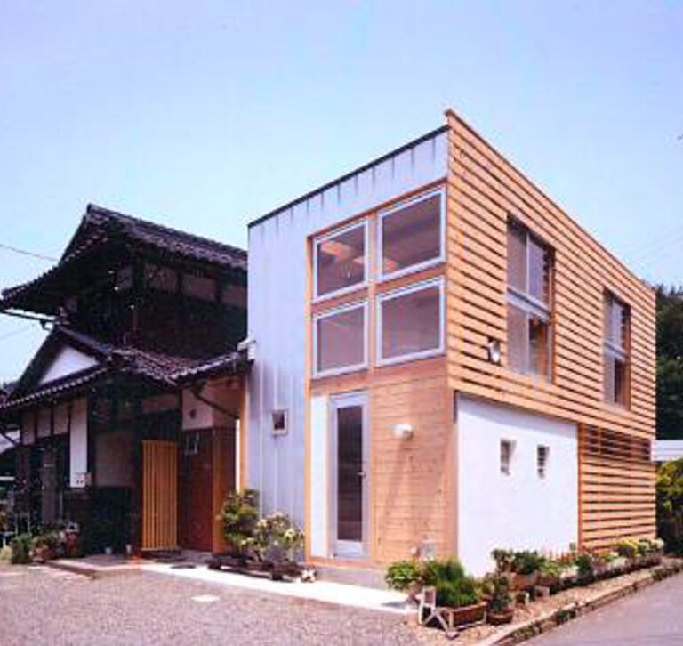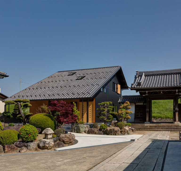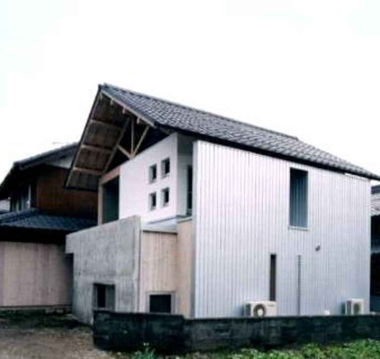 ・揖斐川沿いにある寺院境内に計画する住まいである。・新たな住まいは既存車庫の位置に建築するため、先ず車庫を解体 …