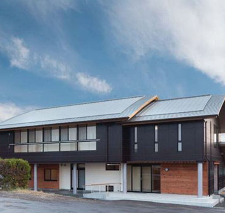 岐阜県養老に建つ企業の研修施設。木造建築を手掛ける機会の多い私達の事務所において、珍しい鉄骨造の建築である。2 …