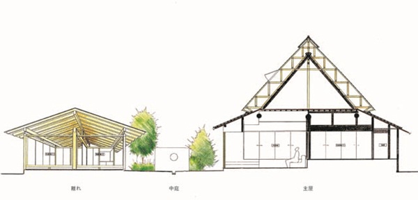 主屋の再生に先立って、まず離れを改築(新築)している。