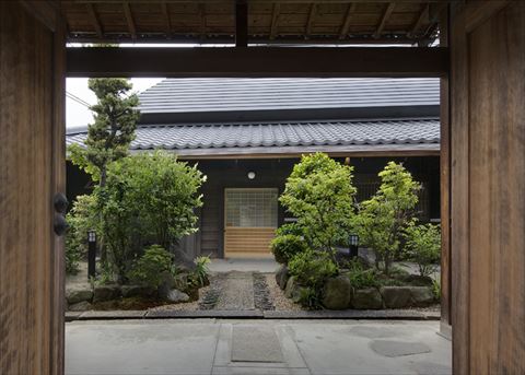 全体計画は、再生する主屋と新築する離れを中庭をはさんで配置し、各棟が中庭を介して有機的につながるように計画している。
