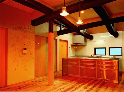 今までの住まいを解体して新築するか、残して再生するか、揺れ動く家族の気持ちの中で、選択の道の相談を受けた。住み継ぎたい若い夫婦、解体新築したい両親。そこで、詳細な現況調査が始まった。診断結果は『極めて健全』。 再生工事で方針が決定した。蘇った重厚で質実な空間の中で感じる、新しさと古さの交差するモダンな時空間。