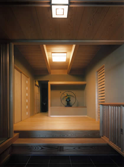 この住宅の建築の過程においては、和室の造作材のひとつひとつの選定から、建具の取手の形状、又石張りのテクスチャー等々、細部に至る相談を受けた。信頼され物をつくることの責任の重大さと、設計者冥利に尽きる信頼の深さを実感した家づくりであった。