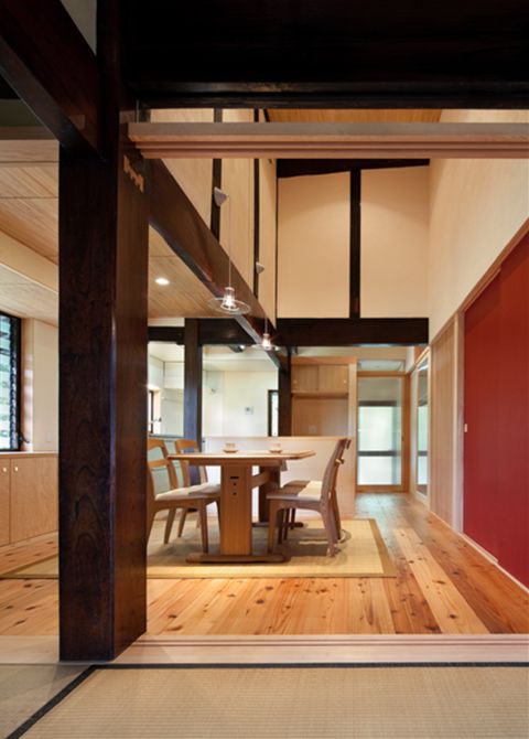 工事中も大黒柱、差鴨居への手入れは極力避け、細心の注意を払っている。I邸では最近まで木部の手入れは自家製のごまの木の煮汁で毎年磨き続けられたという。古くから各家に伝わる「磨き」のメニューがあるようである。住居は家歴を継ぎ、住み継ぎ、又家族を守る一員として、又体の一部として大切に美しく維持管理される湖北の住まいのあり方を感じる。