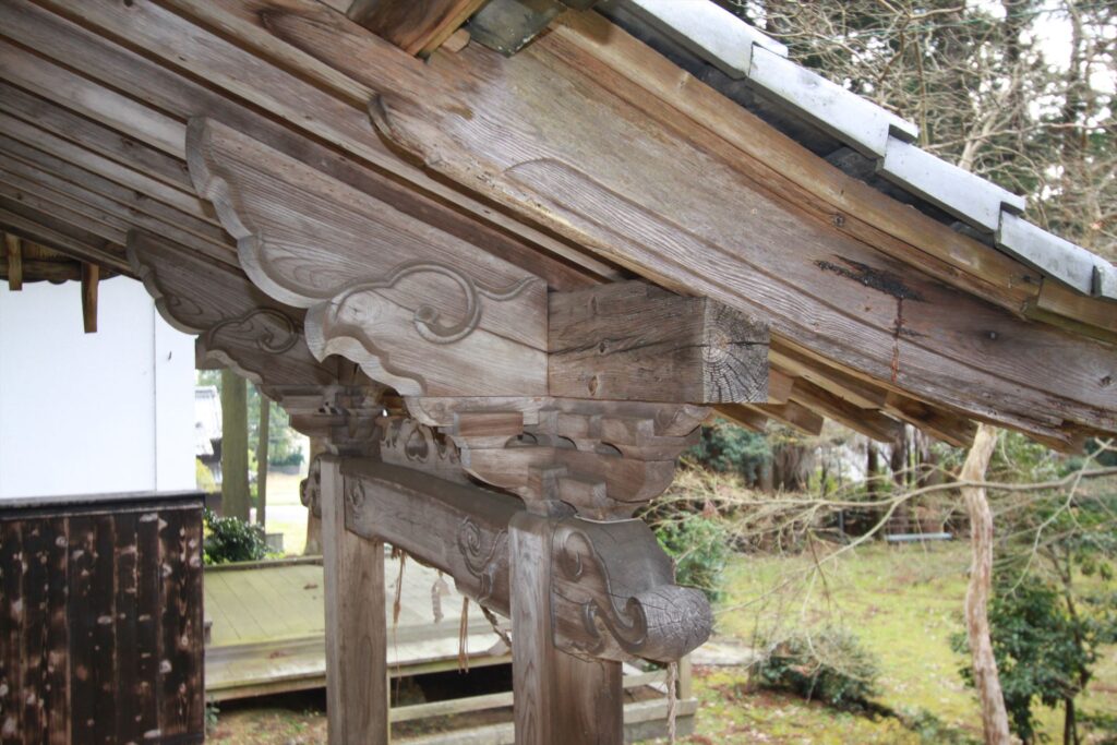 改築においては、旧地蔵堂の向拝部分にあった虹梁・蟇股・木鼻・手挟・斗・肘木の部分を再使用している。