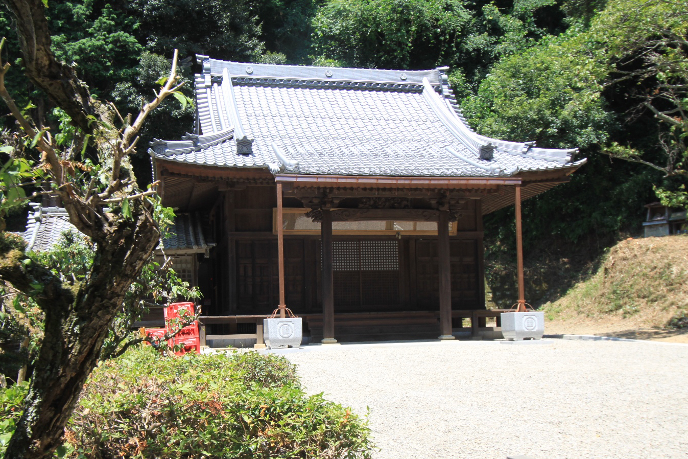 ・境内には、本堂のほか、薬師堂、鐘楼、惣蔵、惣門などがあり、その内の本堂、鐘楼、惣門が国の重要文化財に指定されています。寺坊は、盛時には23坊あったとされていますが、現在、本坊、玉泉院の2坊を残すのみとなり、参道の両側に広がる階段状の台地には、わずかにその面影をみることができます。<観音寺HPより抜粋要約>
