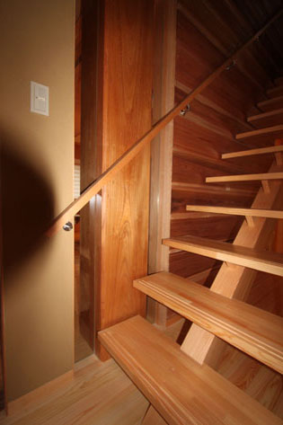敷地は、伝統的な住居が集積する長浜市内の集落の中にある。外観については、既存の伝統的な住居群と違和感なく存在するよう、外形、配色に配慮している。住居の中心に欅の大黒柱(33cm角)を配置し、大径の柱間は差鴨居で固め、外壁は貫を通し土壁で包んでいる。軸組み、小屋組み共この地方の豪雪に耐える伝統的な架構を模し、堅固な逞しい構造体としている。