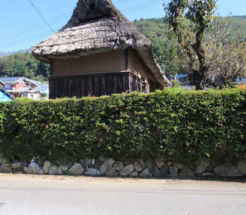 建築年は不詳であるが、歴史ある家のアイデンティティを示すものとして、これまで解体せず残されてきた長屋門である。長い歴史の中で、屋敷内の家の配置、形は時代とともに変わってくるが、『この長屋門は末長く残して守るように』と代々語り伝えられてきた建物だという。