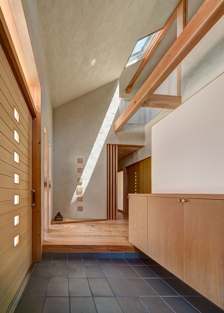 玄関にトップライトより差込む光は刻々と変化し、大自然の移ろいを感じさせてくれる