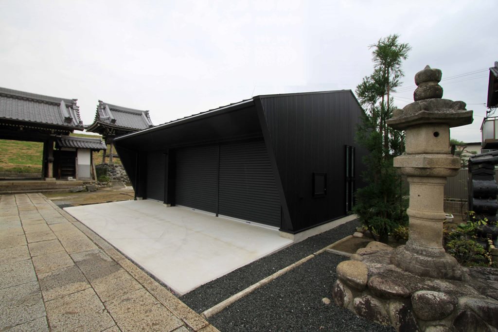 ・車庫という機能の障害にならない最低限の箱と存在を感じさせない色と形を追求、建築している。
