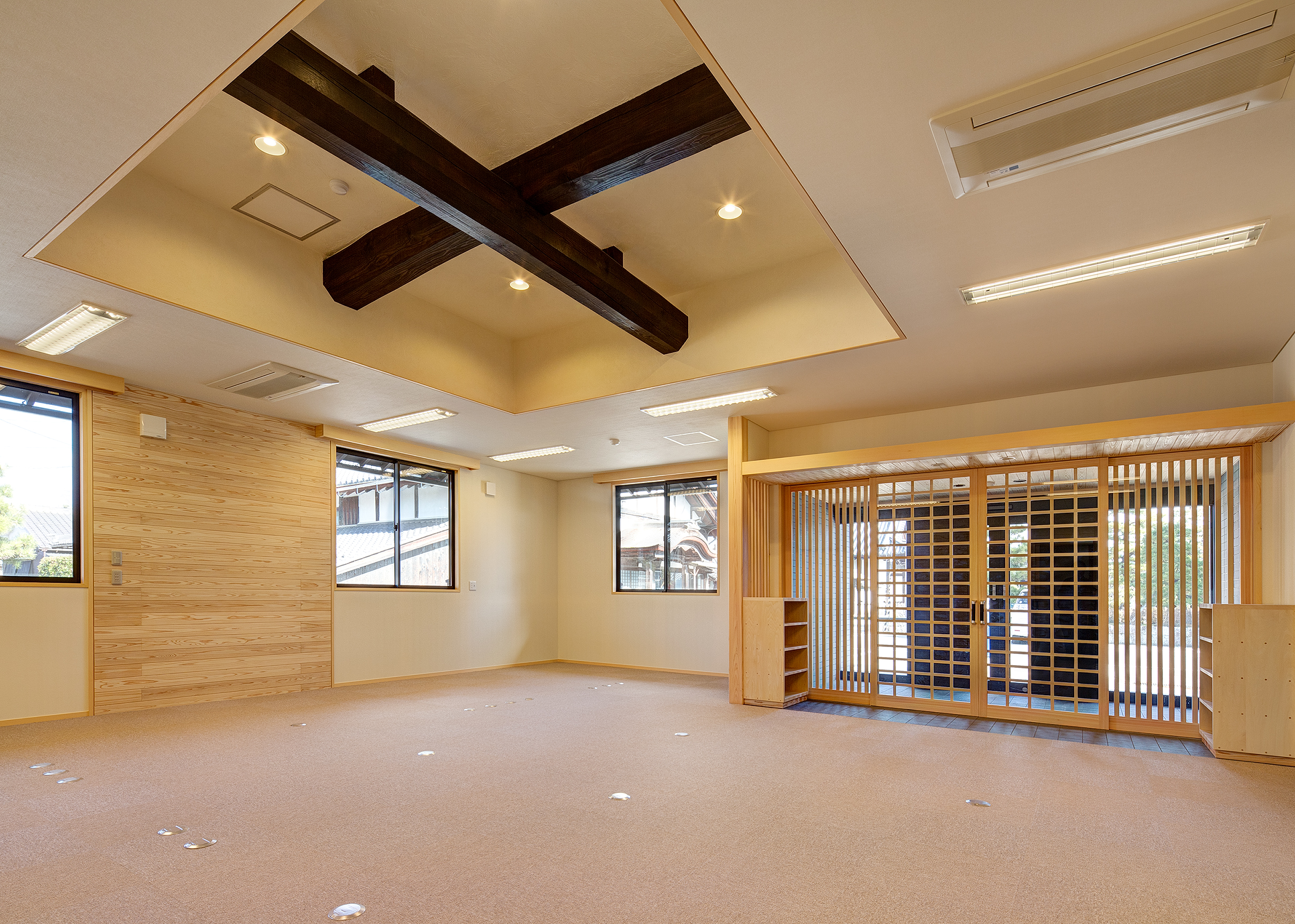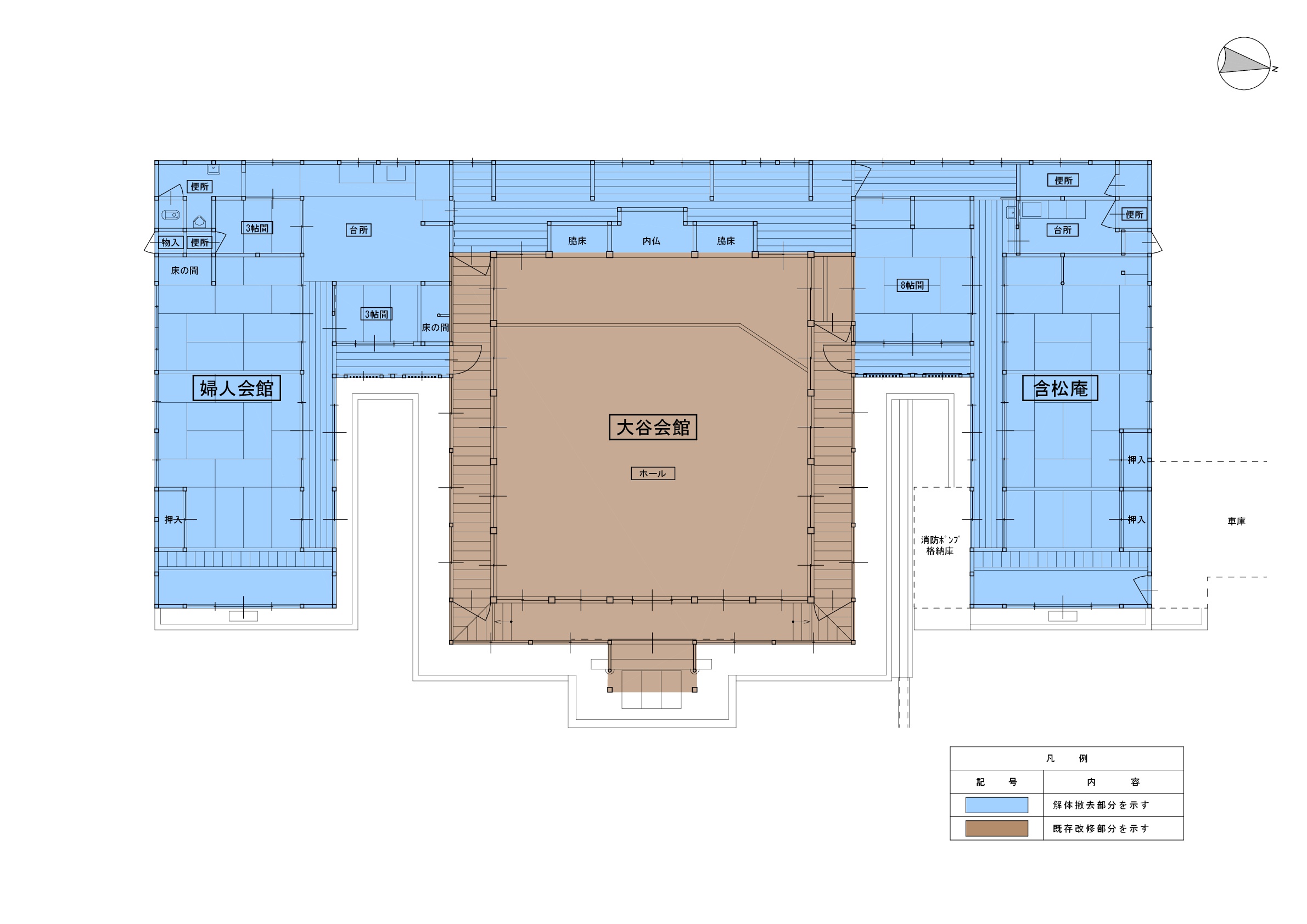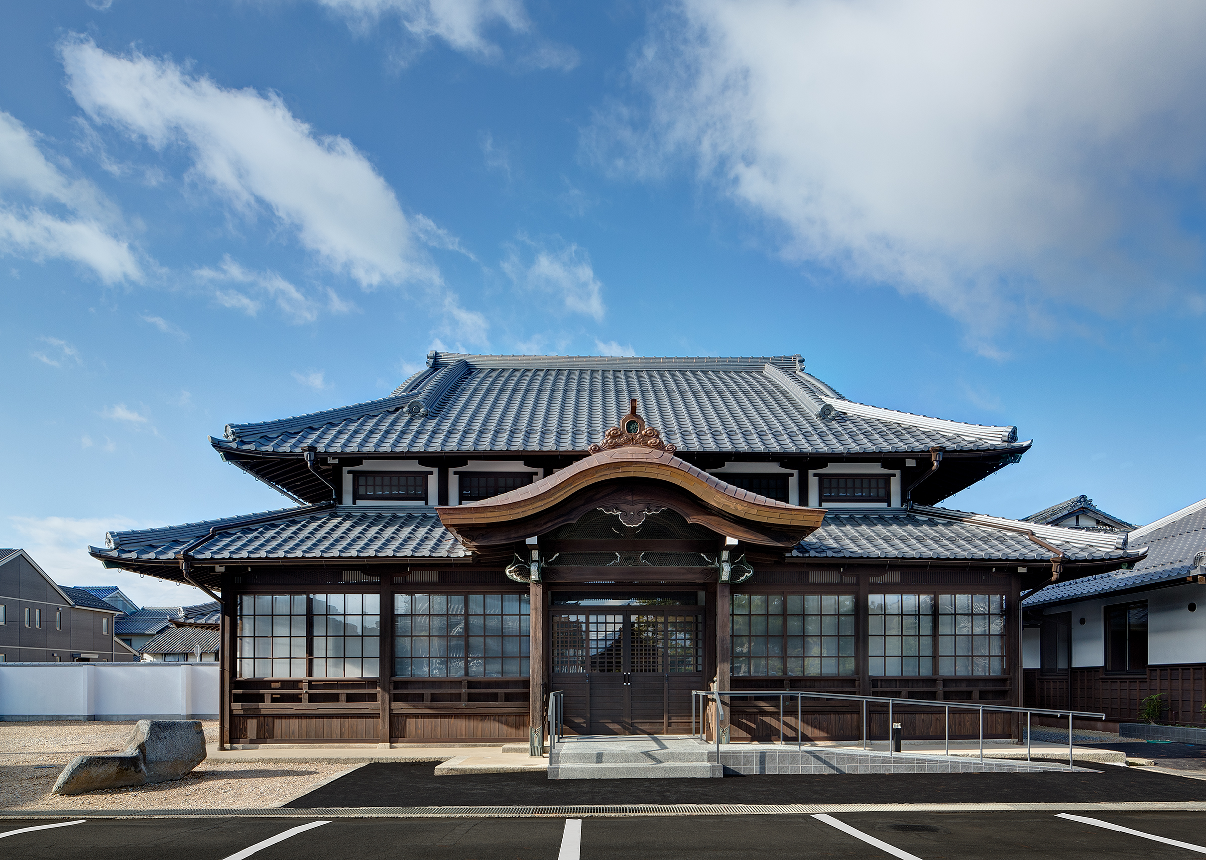 大谷会館は建築から約90年が経過していた。大通寺境内整備の一環として大谷会館の修復、事務棟の新築がなされた。修復棟と新たな機能が付与された新築事務棟の融合した建築である。