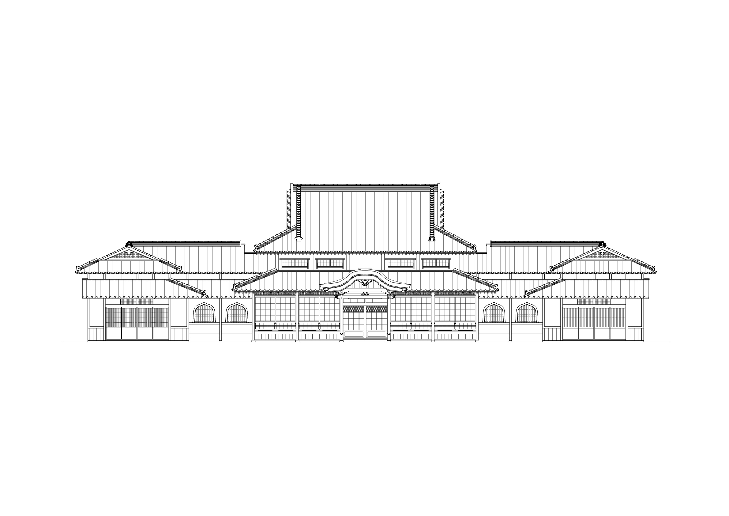 右より太鼓楼・本堂・大広間と並ぶ