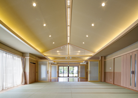 ・内部の集会室は、中央で間仕切りが可能な形とし、2室を同時に使用する時、又、少人数の会議の時など、多用途な会議にフレキシブルに使用できる間取りとしている。